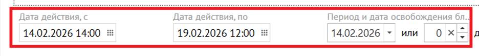 Освобождение блоков: “Период” и “Дата освобождения блоков”