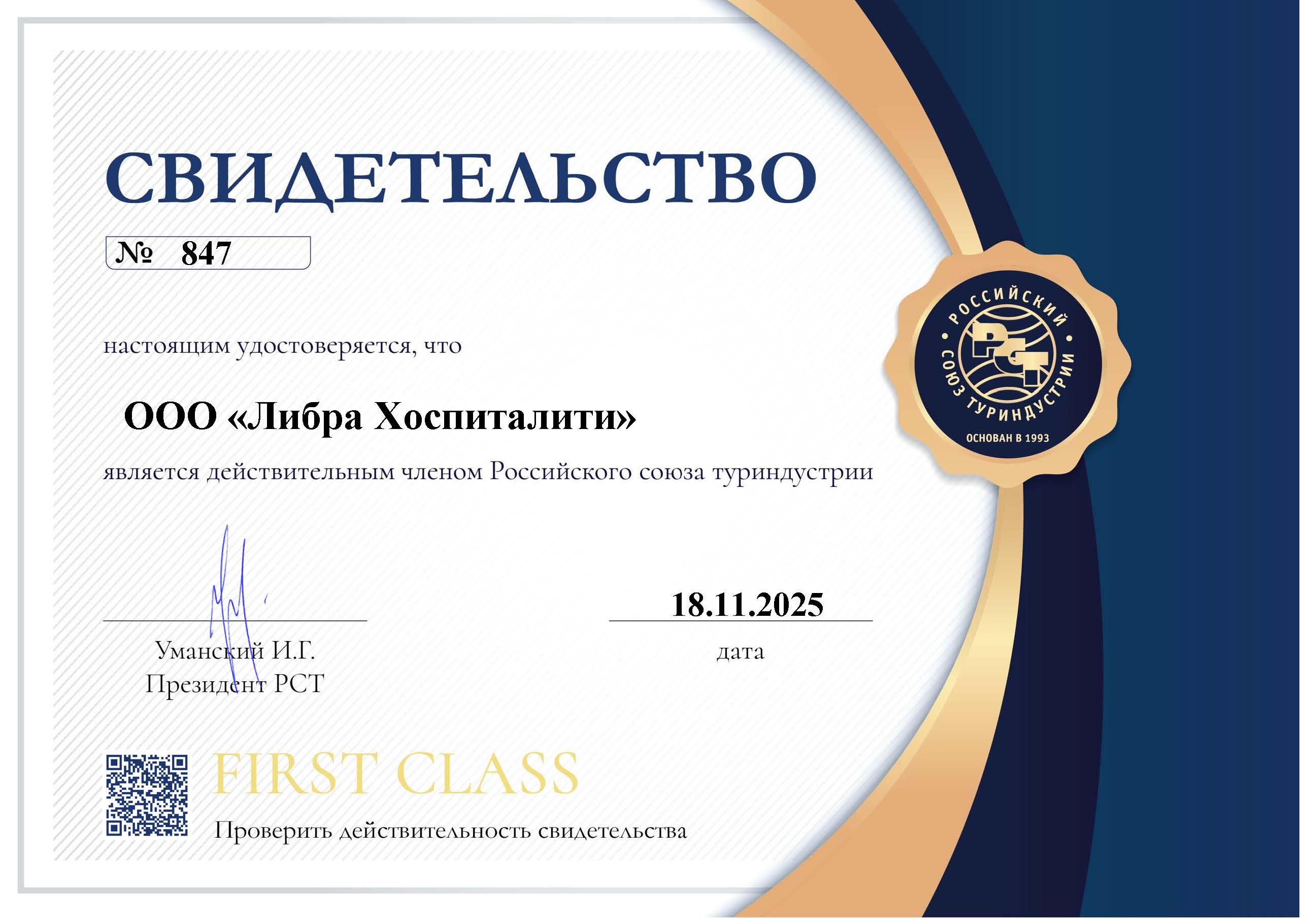 Статус члена РСТ открывает для компании дополнительные возможности: участие в формировании отраслевой повестки, доступ к профессиональным дискуссиям и рабочим группам Союза, расширение партнёрств с представителями туриндустрии по всей стране и совместное продвижение современных технологий в туризме и гостиничном бизнесе.
