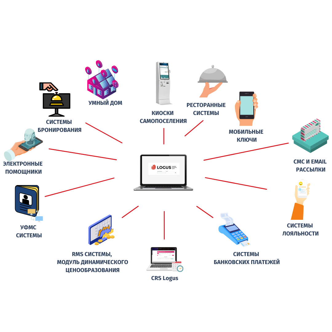 Все они четко стыкуются с Logus HMS через API (программный интерфейс приложений).